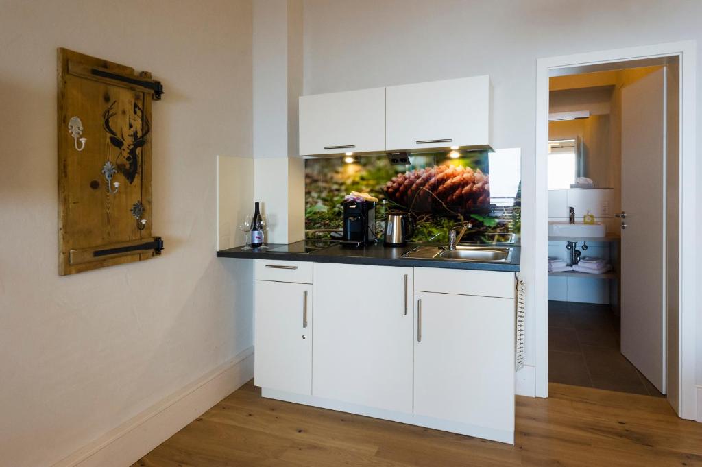Alte Tischlerei — это отдельная квартира (около 70 квадратных метров) для любителей природы, индивидуалистов, любителей кулинарии, любителей собак или... В квартире есть оборудованная кухня, индукционная плита шириной 80 см, конвекционная духовка и пароварка, холодильник/морозильная камера, а также ванная комната с очень большим душем и отдельным туалетом. Зона открытой планировки, поэтому здесь нет закрытой спальни. Снаружи есть частный сад с сидячими местами, барбекю и забором.