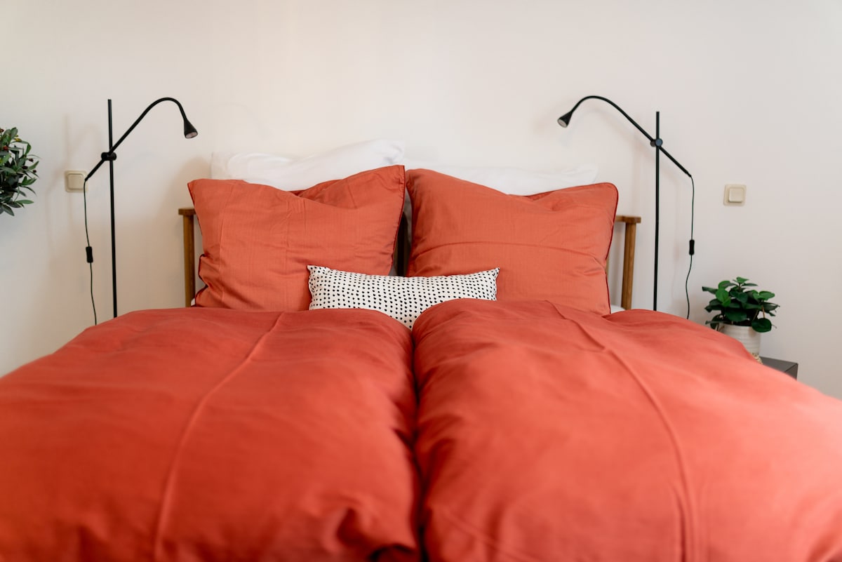 Уютная квартира со спальней (двуспальная кровать), ванной комнатой и гостиной с диваном-кроватью. Полностью оборудованная кухня, включая Кофеварка, плита и холодильник. Есть Wi-Fi, телевизор и рабочее место. Перед дверью есть бесплатная парковка. Всего в нескольких минутах от центра города, легко добраться до общественного транспорта и шоссе. Идеально подходит для пар, одиночных путешественников или деловых путешественников, которые ценят комфорт и спокойствие. Рядом магазины и рестораны.