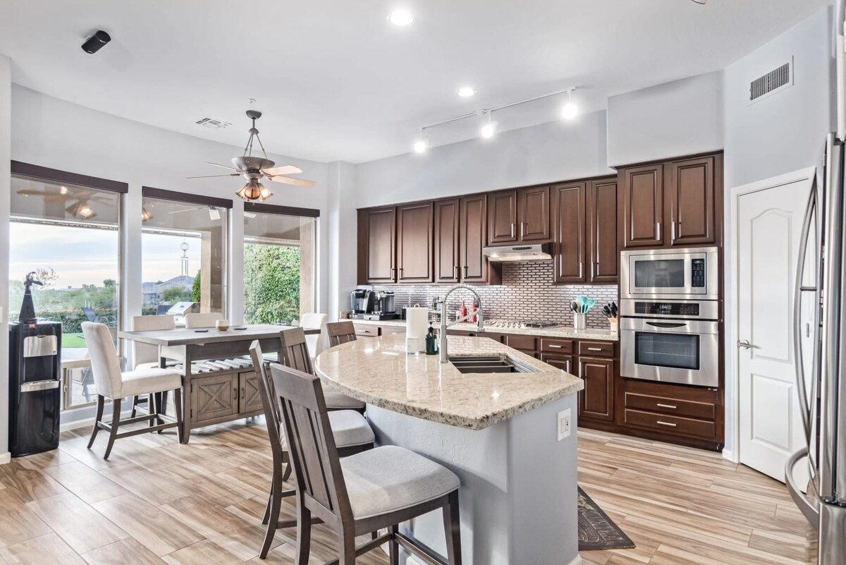 Turquoise Palms – Your Scottsdale Escape 🍽️ Cook in a fully stocked kitchen 💦 Splash in the heated pool ☀️ Relax in submerged baja chairs ⛳ Challenge each other at Golden Tee 🔥 Fire up the grill and enjoy the Arizona sun in your private backyard oasis 📍 Centrally located for shopping, dining, and desert adventure Whether its kids laughing in the pool, grandparents enjoying quiet moments, or everyone gathered around the grill, Turquoise Palms is where family memories are made.