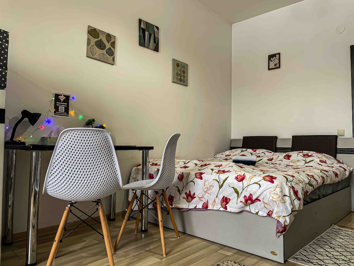 Современная уютная квартира всего в 15 минутах от центра города Яссы (Дворец культуры), расположенная в тихом семейном районе с удобным общественным транспортом. ✨ Идеально подходит для удаленной работы: отдельное рабочее место 🐾 Полностью подходит для домашних животных — возьмите с собой собаку, кошку или хомяка! ☕ Бесплатный Wi-Fi, парковка и кофе (да, правда!) 🌿 Открытая планировка с мягкими, успокаивающими пастельными тонами 🛏️ Удобная кровать, свежее постельное белье и качественный матрас Ваше уютное пребывание в Яссах начинается здесь – я буду рад принять вас!