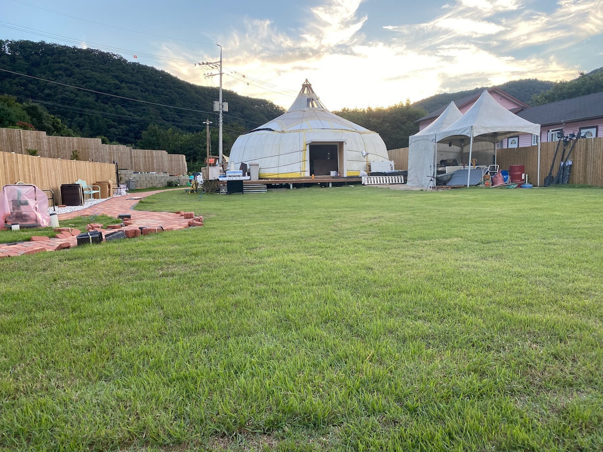 Это место, где вы можете получить уникальный и замечательный опыт, сочетающий в себе традиции и современность. Мечта о существующем лугу обновлена ~ ~ Вы можете наслаждаться различными впечатлениями в одном месте с собственным садом, где дети и домашние животные могут безопасно бегать и играть, а также открытым спа-салоном и кипарисовой сауной, которые можно использовать даже в середине зимы. Прибытие в 15:00, но вы можете приехать заранее и воспользоваться долиной Byeok по соседству, отдохнуть в кафе или саду и войти сразу, когда будете готовы войти даже до 3 часов. Это современная интерпретация монгольского гэра. Он находится в 3 минутах от IC Seojong, который находится недалеко от Сеула, а жилье и индивидуальный сад используются в одиночку. Мы разработали из традиционного гер, который любили уже два года, так что вы можете насладиться более комфортными и уникальными впечатлениями. Есть отдельная спальня, кухня и туалет, соединенные от Ger, а также открытый спа-салон, кипарисовая сауна и принадлежности для барбекю, которыми можно пользоваться круглосуточно, а внутри есть пеллетная печь, так что можно насладиться крытой костровищем. В поиске Янпхёнгера ~