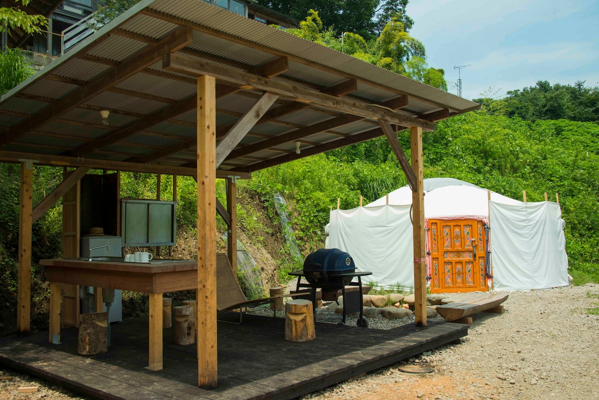 Необычный опыт проживания в гертент-тенте. Кондиционер, Wi-Fi. Возможен трансфер до станции Симонаде и парка Футами Сисайд, барбекю