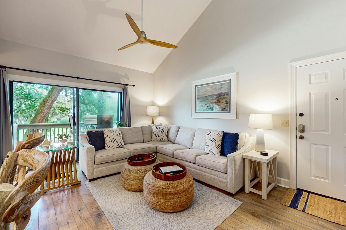 Красиво отремонтированный в современном пляжном стиле! Эта стильная прибрежная вилла с красивым новым полом, новой мебелью, постельным бельем и обновленными ванными комнатами ждет вас, чтобы расслабиться и насладиться всеми морскими соснами и HHI. От потрясающей кухни до продуманного рабочего места и расширенного патио с грилем - на этой вилле с двумя спальнями и двумя ванными комнатами могут с комфортом разместиться шесть взрослых. Это жилье подходит для домашних животных, но чистое и хорошо оборудованное, и предлагает одно из лучших мест в Си-Пайнс.
