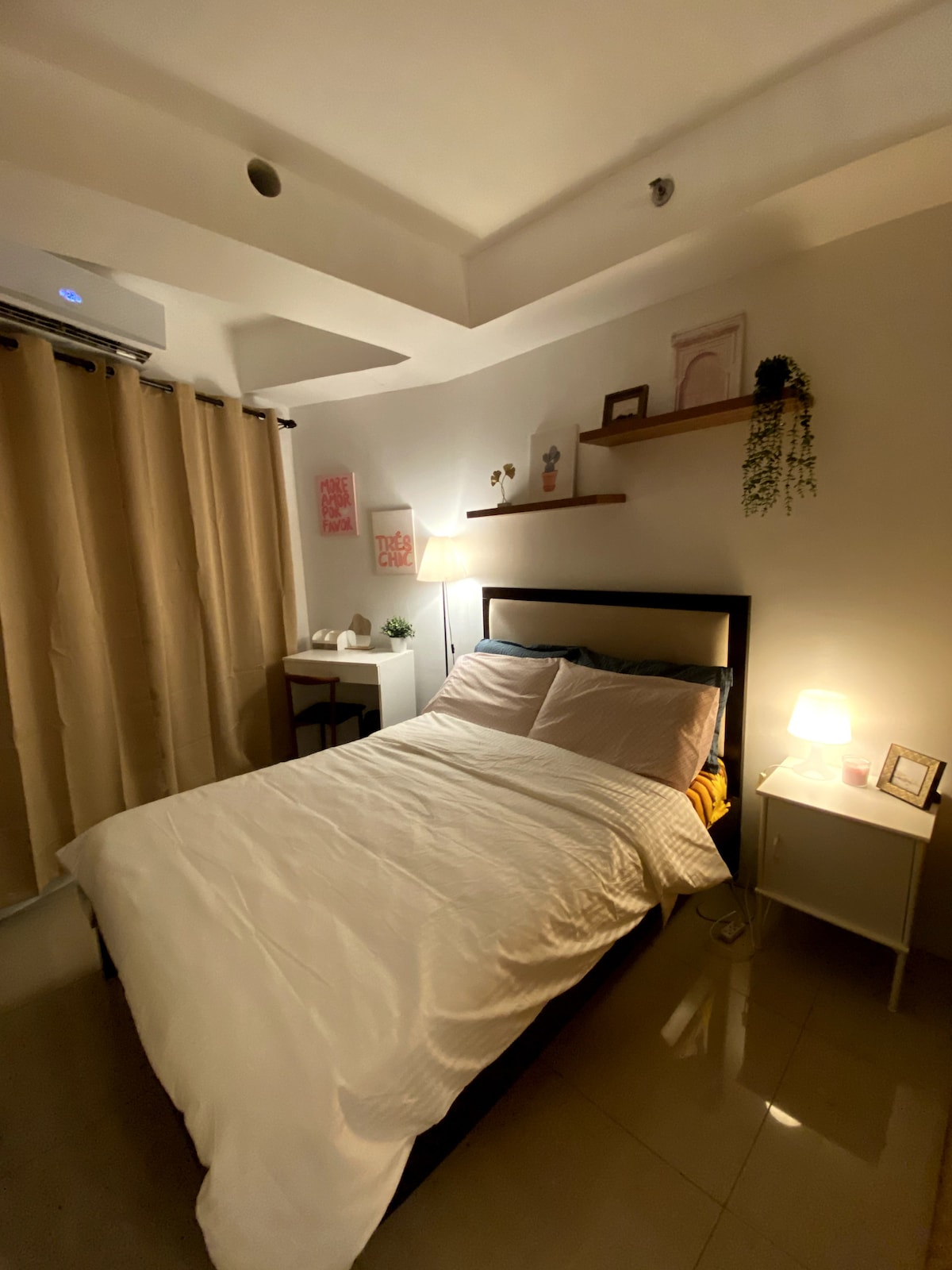 Shell Residence — это эксклюзивный жилой кондоминиум в Пасае, в нескольких минутах ходьбы от торгового центра Mall of Asia и удобно расположенный недалеко от аэропорта NAIA. В нашей комнате могут разместиться 4 человека. Одна (1) спальня с 1 полноразмерной/двуспальной кроватью на двоих (2), раскладным спальным местом на одного (1) и 1 диваном-кроватью на двоих (2). Квартира особенная площадью 38,10 кв. м, и это большое пространство по сравнению с другими обычными кондоминиумами 1BR (только 24 кв. м) и просторным балконным садом и видом на бассейн.