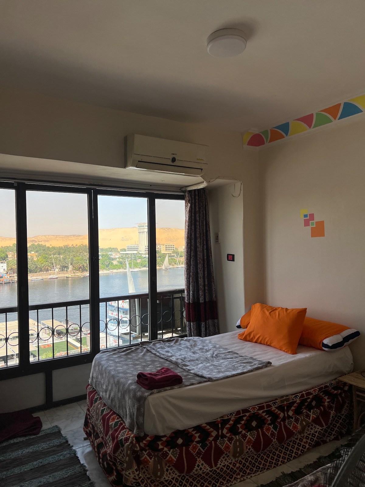 Welcome to Aswan Sunrise Apartment, your ideal stay near the Old Souq, Nile Corniche, and the charming Nubian villages. Enjoy stunning Nile views and the warm Aswan sun from this bright and cozy apartment. It features one spacious bedroom with three beds (sleeps up to five guests), a clean bathroom, and a fully equipped kitchen. Perfect for families or groups, it offers comfort, culture, and easy access to Aswan’s main attractions and local life.
