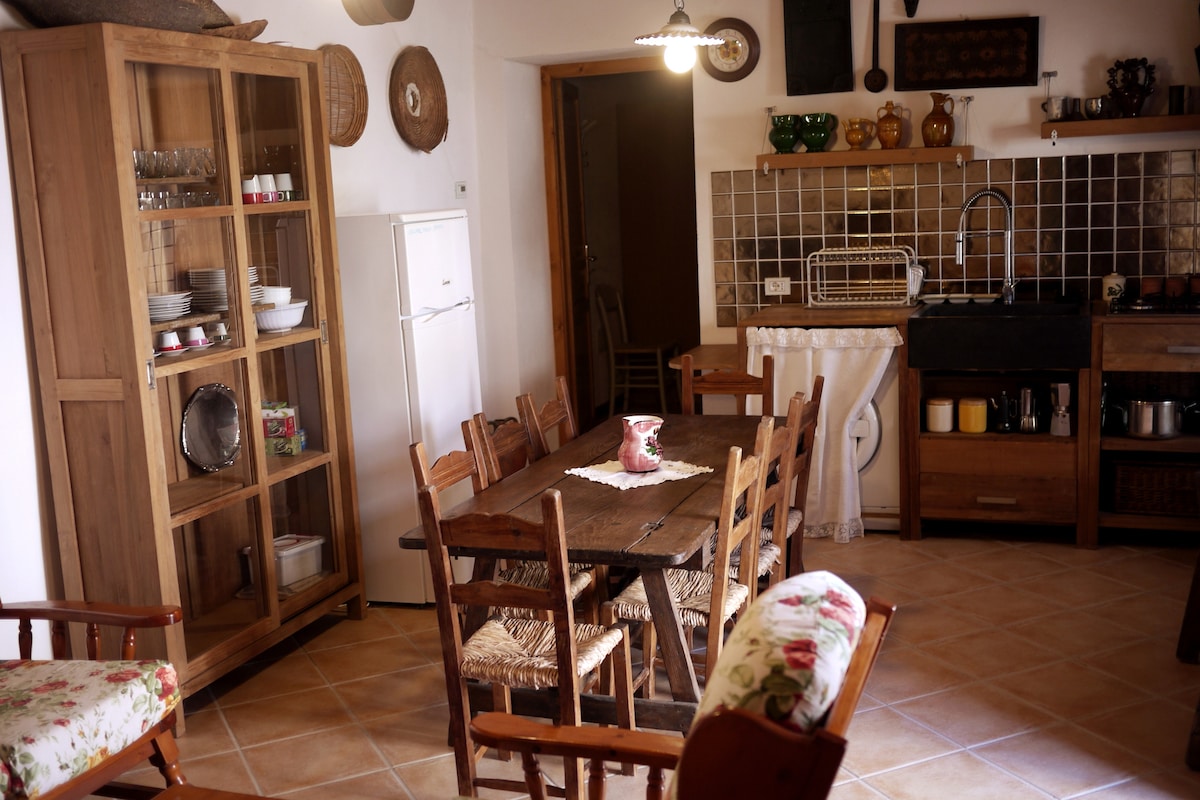 Это недавно отремонтированный дом, типичный кампидан. В доме есть старая духовка, которая когда-то используется для выпечки и приготовления типичной сардинской выпечки для семейного использования. Она расположена в центре деревни, имеет внутренний двор с парковкой. Он находится недалеко от Археологического музея, муниципалитета, аптеки и всех основных удобств. В том же дворе есть возможность забронировать дом "очаг" на 6 человек и "очаг цокольный этаж" на 2 человека.