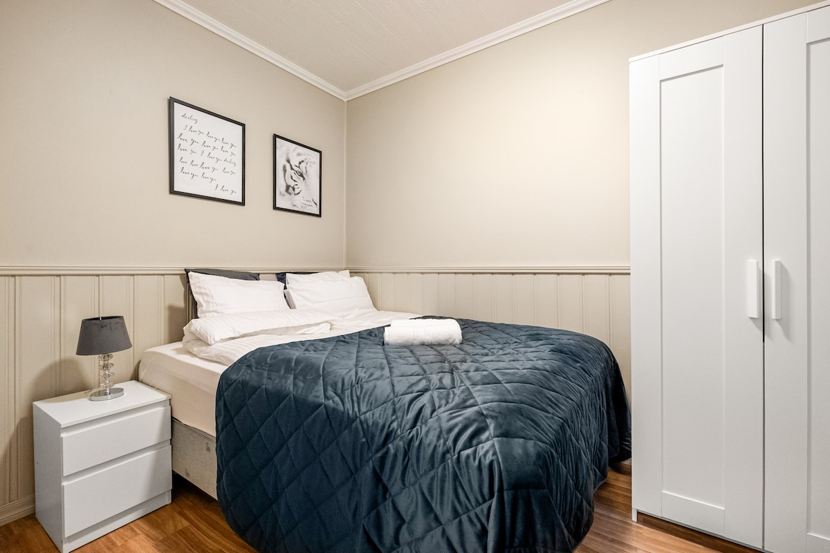 This second-floor apartment is in an excellent location in Nordnes, Bergen. It is in the heart of the city, just a five-minute walk from all the city's popular attractions. It is well-equipped with modern amenities. The neighborhood is clean, peaceful, and has minimal traffic, making it an ideal place for a short or longer stay in the city. Parking facilities, a café and bistro, a grocery store, a bakery, and a bar within walking distance add to the overall appeal of the apartment.