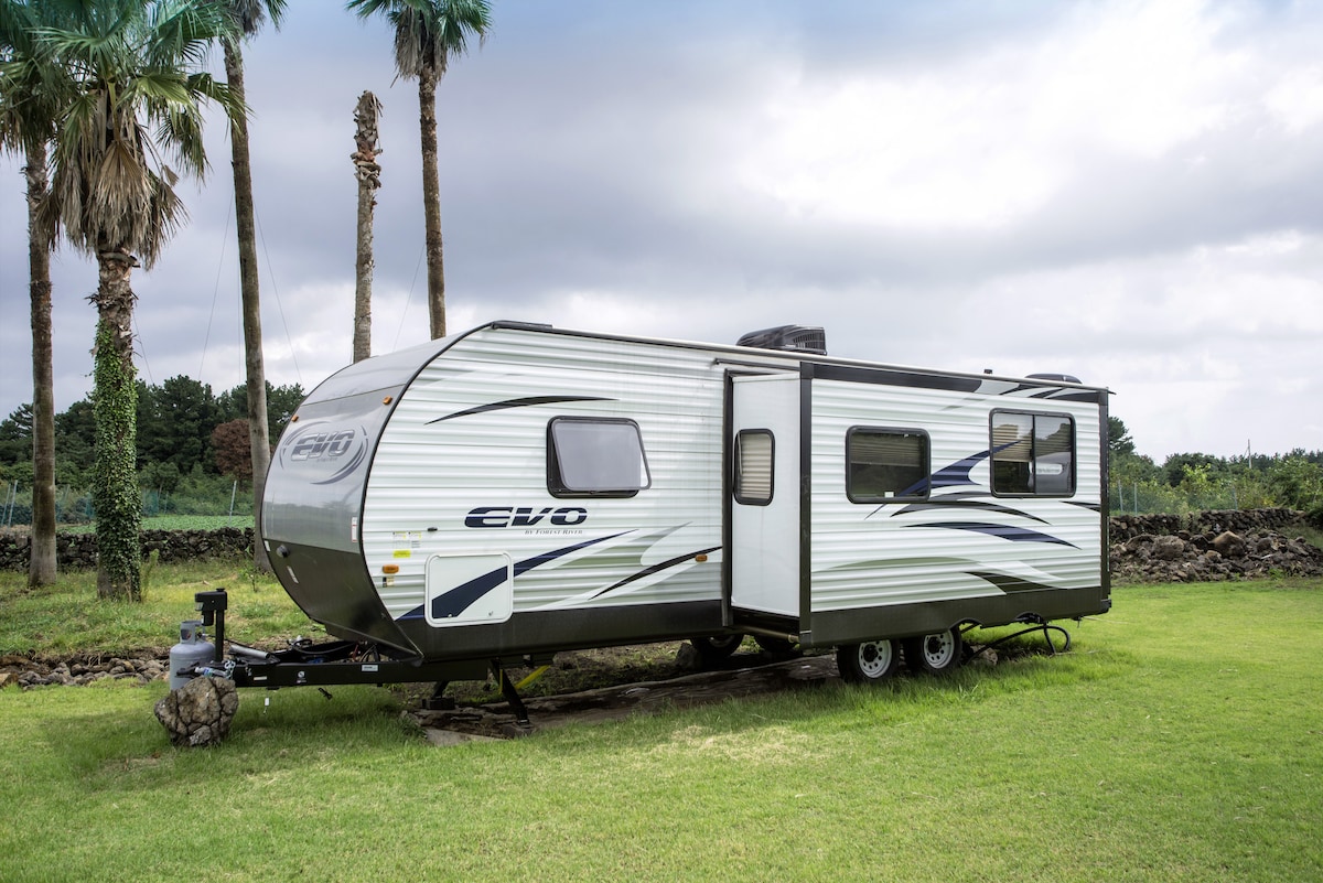 Остановитесь в небольшом доме в небольшом доме на западной стороне острова Чеджудо, сегодня вы можете испытать эмоциональный кемпинг и трейлер во дворе на открытом воздухе, и отдохните всей семьей в спокойном жилье с самыми красивыми закатами и экзотикой белые ветряные мельницы в Чеджудо.