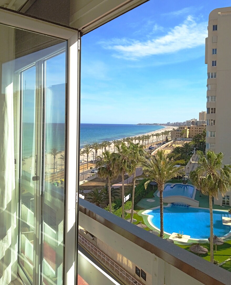 Впечатляющие 120 метров на берегу моря, недавно отремонтированные, со столовой, трансформируемой в 60-метровую террасу, потрясающим видом на море и побережье и зоной отдыха для отдыха. Дизайнерская кухня и 2 ванные комнаты. Все снаружи, 3 очень просторные спальни с двуспальными кроватями. Очиститель воды с обратным осмосом. Прямой доступ к пляжу из урбанизации. Недавно построенный бассейн. Бесплатная парковка. Готов к детям! Лицензия VT-463132-A