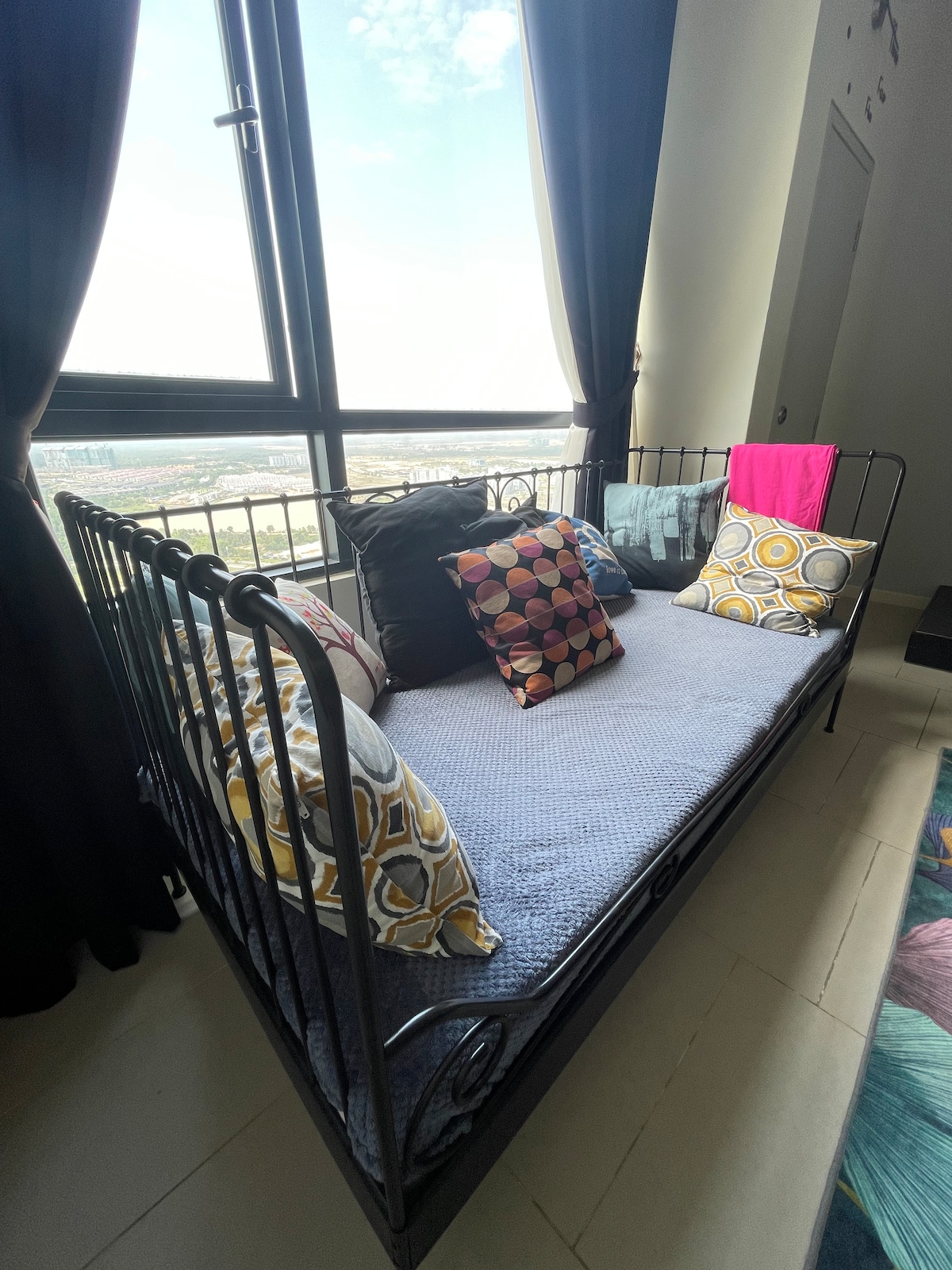A cosy duplex on the highest floor of the building (Level 21), with a queen bed and a 3-seater sofa. Suitable for both short- and long-term stays. The building is in De Centrum Mall, with shops such as Super7 (supermarket), Mr. DIY, Watsons, and 7-Eleven among others, and facilities like launderettes and a clinic (Poliklinik MyMedik). •Check in time: from 3PM •Check out time: 12PM