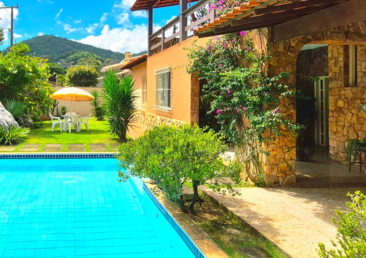 Спокойствие и красота, всего в 3 км от центра Петрополиса. Сосего и охрана рядом с национальным парком Серра-дус-Оргас, а также удобство и веселье столицы. Отлично подходит для наслаждения историческими экскурсиями и местной гастрономией и не отказывается от спокойствия, безопасности и очень зелени. Рядом со знаменитыми тропами и водопадом. Идеально подходит для семей, пар и друзей. Suite c double bed, bicama, TV stick c android, мини-бар, полностью оборудованная кухня. E, красивая терраса с видом на бассейн.