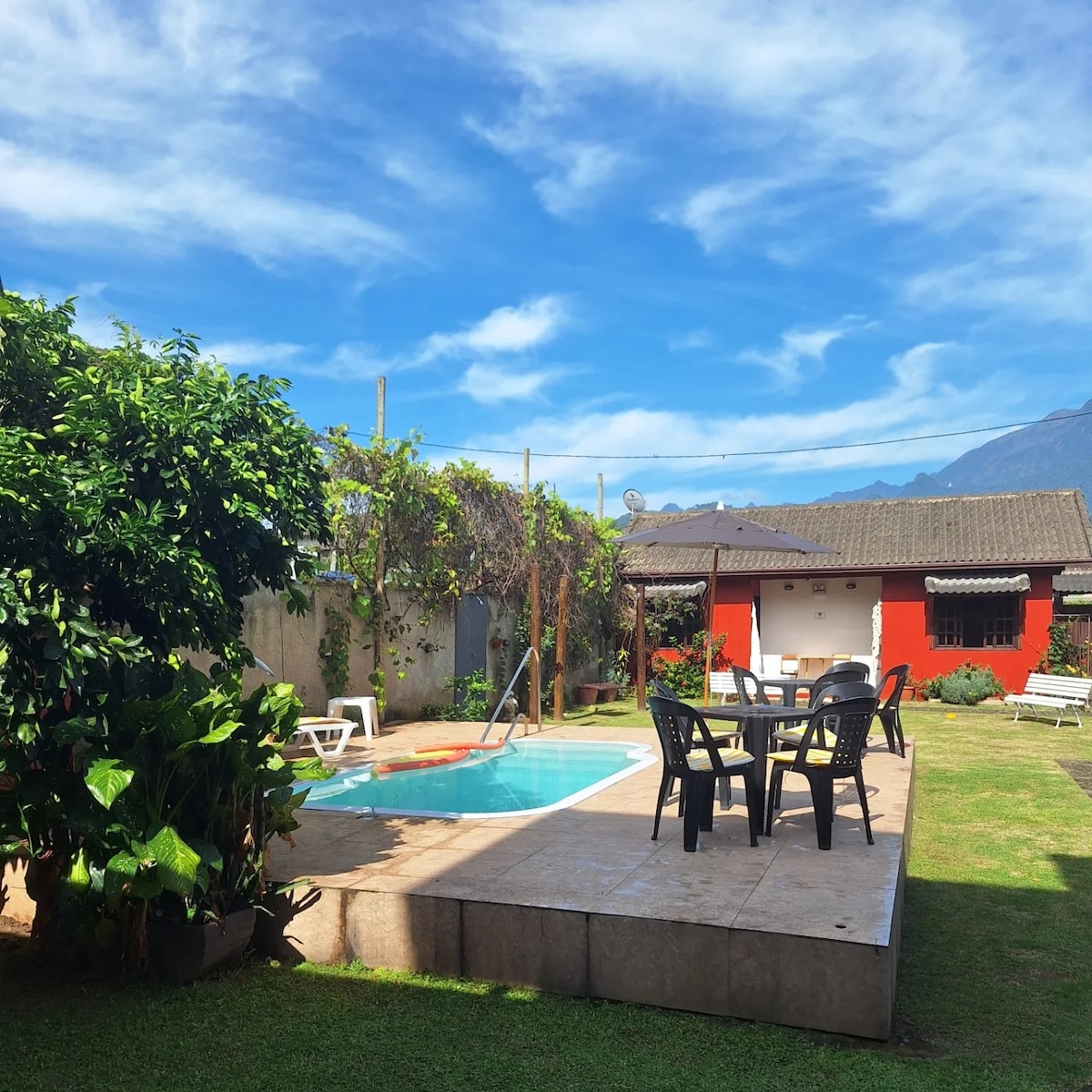 Спокойствие и красота, всего в 3 км от центра Петрополиса. Сосего и охрана рядом с национальным парком Серра-дус-Оргас, а также удобство и веселье столицы. Отлично подходит для наслаждения историческими экскурсиями и местной гастрономией и не отказывается от спокойствия, безопасности и очень зелени. Рядом со знаменитыми тропами и водопадом. Идеально подходит для семей, пар и друзей. Suite c double bed, bicama, TV stick c android, мини-бар, полностью оборудованная кухня. E, красивая терраса с видом на бассейн.