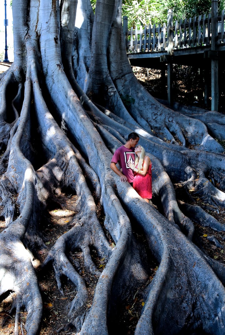 Съемка начинается в Spreckles Organ Pavilion, где находится самый большой в мире уличный орган. Свет просачивается сквозь листву и гигантские корни фикуса в Моретон-Бей.