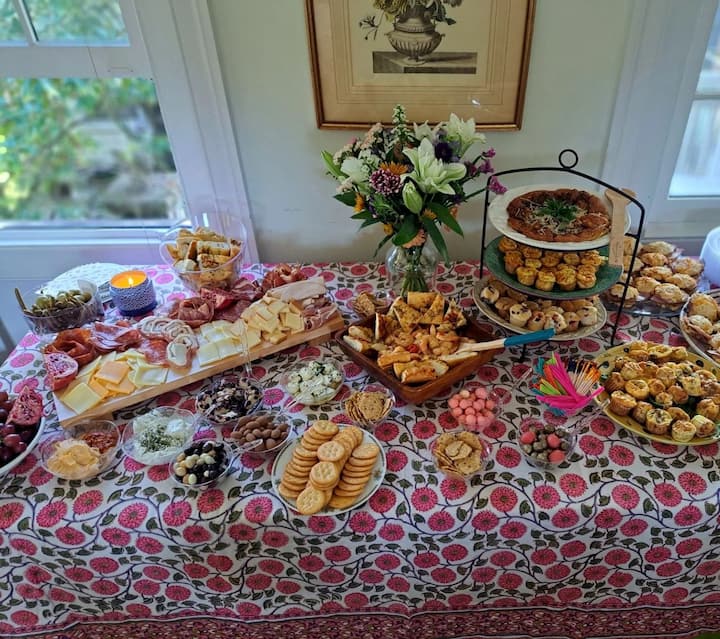 Элегантность, земляные тона и солнечный свет. На бранч подают шакшуку со специями, финики с фетой, салат из цитрусовых и оливок и лимонный пирог с оливковым маслом.