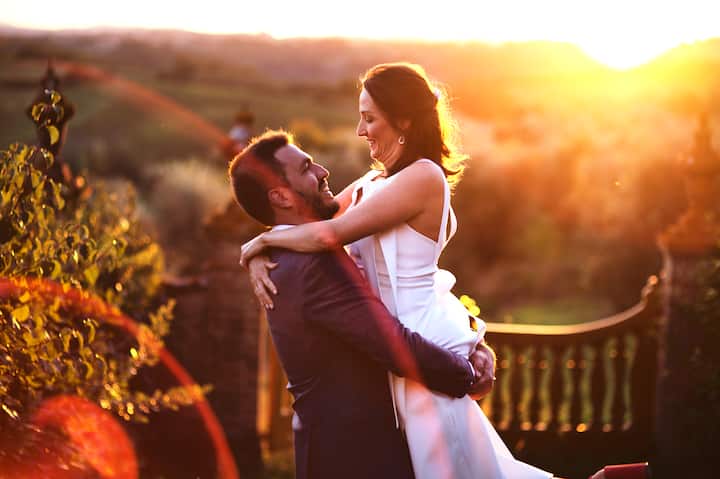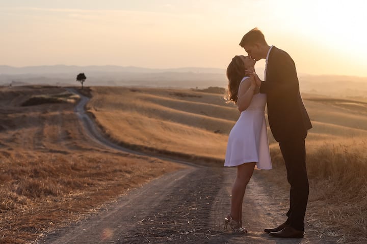 Эта фотосессия на фоне тосканского пейзажа идеально подходит для романтических поездок или свадеб.