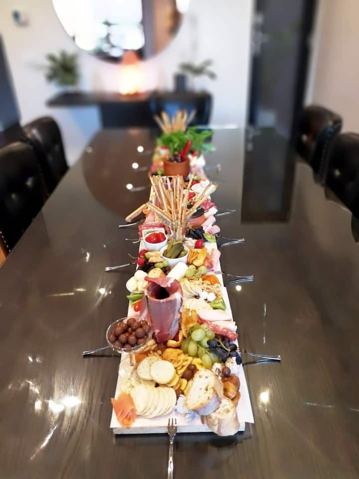 Подарите себе удовольствие от премиальной мясной доски с вяленым хамоном, домашним гравлаксом, бри, манчего, испанскими анчоусами, каталонской брускеттой, свежими фруктами, орехами и кустарными деликатесами, красиво оформленными для по-настоящему приятного опыта. Доставка в ваше жилье Airbnb или наша эксклюзивная доставка на Degraves Street, Мельбурн, с бесплатным кофе