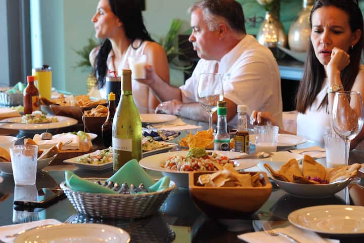 Они будут пить мимозы и наслаждаться свежими сезонными фруктами, сырной тарелкой и тостами. Они могут выбрать основное блюдо: тост с лососем и яйцом, банан и шоколадные блинчики или знаменитые чилакилес с моллетес. В конце будет мини-торт ко дню рождения и американский кофе