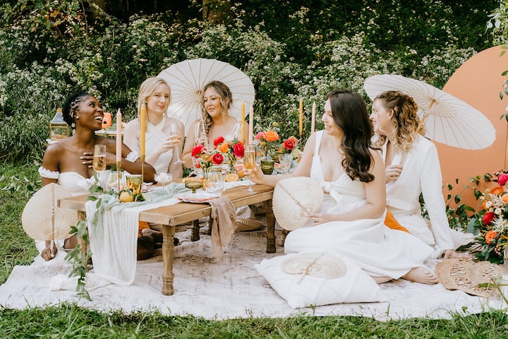 Полный набор для роскошного пикника, включая сервировку, цветы и декор в индивидуальной цветовой палитре