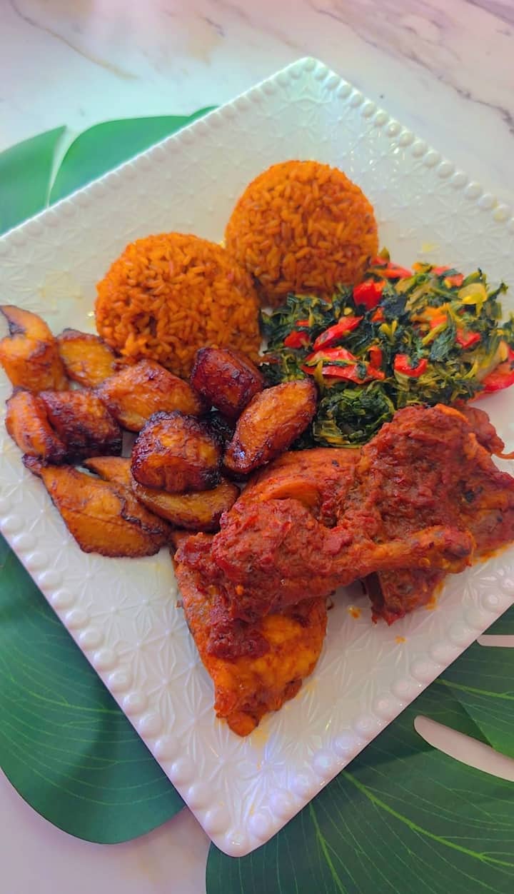 Начните с имбирного чая со льдом и гибискусом в качестве приветственного напитка, а затем попробуйте это меню из 2 блюд. Насладитесь слоеными булочками или оладьями акара, нигерийским копченым рисом джоллоф с курицей на гриле или веганской альтернативой, подаваемой с жареными бананами. На десерт подается пудинг из тапиоки с кокосовым молоком. Это блюдо идеально подходит для небольших бюджетов, повседневных встреч или бранча.