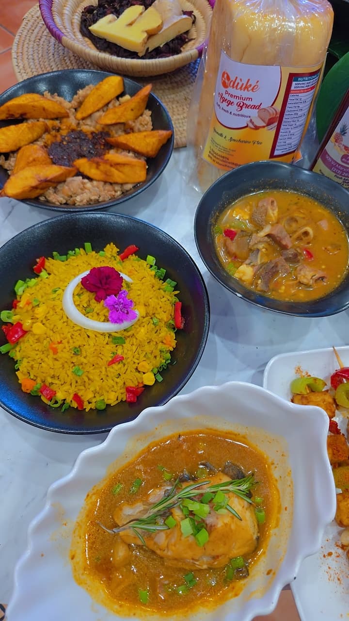 Побалуйте себя обедом из 3 блюд, включающим куриные шашлычки суя или тофу суя, суп эгуси с курицей, говядиной, рыбой или грибами, подаваемый с толченым ямсом или фуфу и салатом с нигерийским острым соусом. Завершите трапезу десертом из закусок чин-чин и свежих фруктов. Насладитесь спритцером из пальмового вина или мятно-лаймовой агуа фреска.