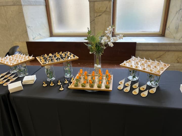 Эти изысканные закуски, выпечка и канапе предназначены для коктейльных приемов, мероприятий по налаживанию деловых контактов и встреч стоя.