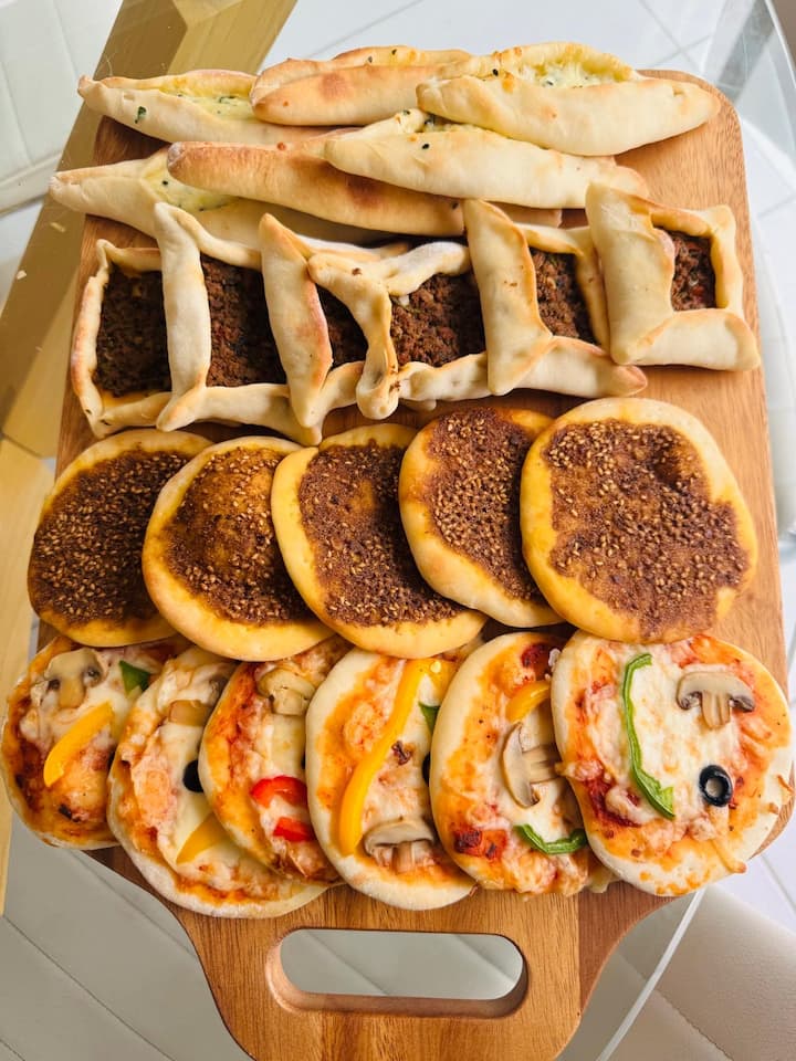 Побалуйте себя коробкой из 50 штук сирийской выпечки ручной работы, включая сыр, мясо, шпинат, небольшую пиццу и выпечку заатар. Ассортимент отлично подходит для встреч, небольших собраний, подарков или кофе-брейков.