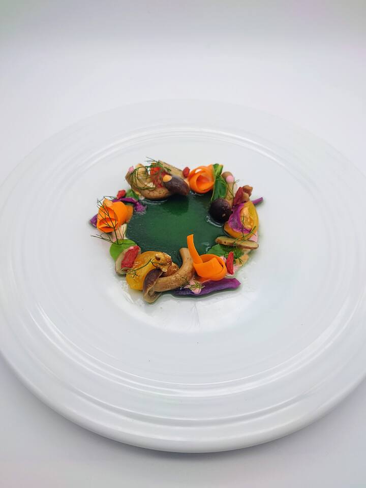 Побалуйте себя блюдами из сезонных ингредиентов, включая мясо, рыбу и яркие овощи. Путешествие начинается с 2 изобретательных закусок, за которыми следует паста или ризотто, приготовленные с заботой. Основное блюдо сочетает в себе технику и вкус, а легкий преддесерт освежает вкус. Ужин завершается десертом ручной работы.