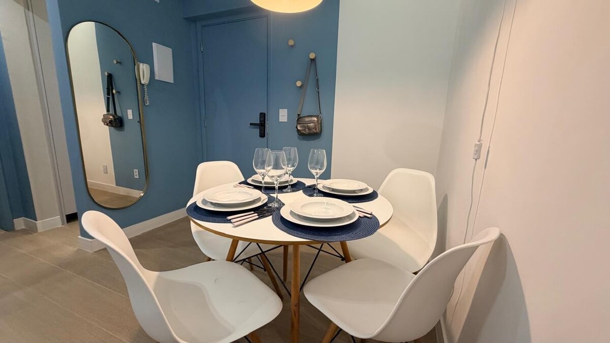 Добро пожаловать в вашу уютную очаровательную студию на Понта-да-Прая, одном из самых очаровательных районов Сантоса! Идеально подходит для пар, деловых или одиночных путешественников, наше жилье предлагает все, что нужно для комфортного пребывания: Постельное и банное белье. Недостаточно коллективного гаража в здании. Интегрированная обстановка с удобной кроватью, шкафом и телевизором. Оборудованная кухня для приготовления простых блюд. Ванная комната с расслабляющим душем и термомашиной для полотенец. Компактное, практичное и уютное место.