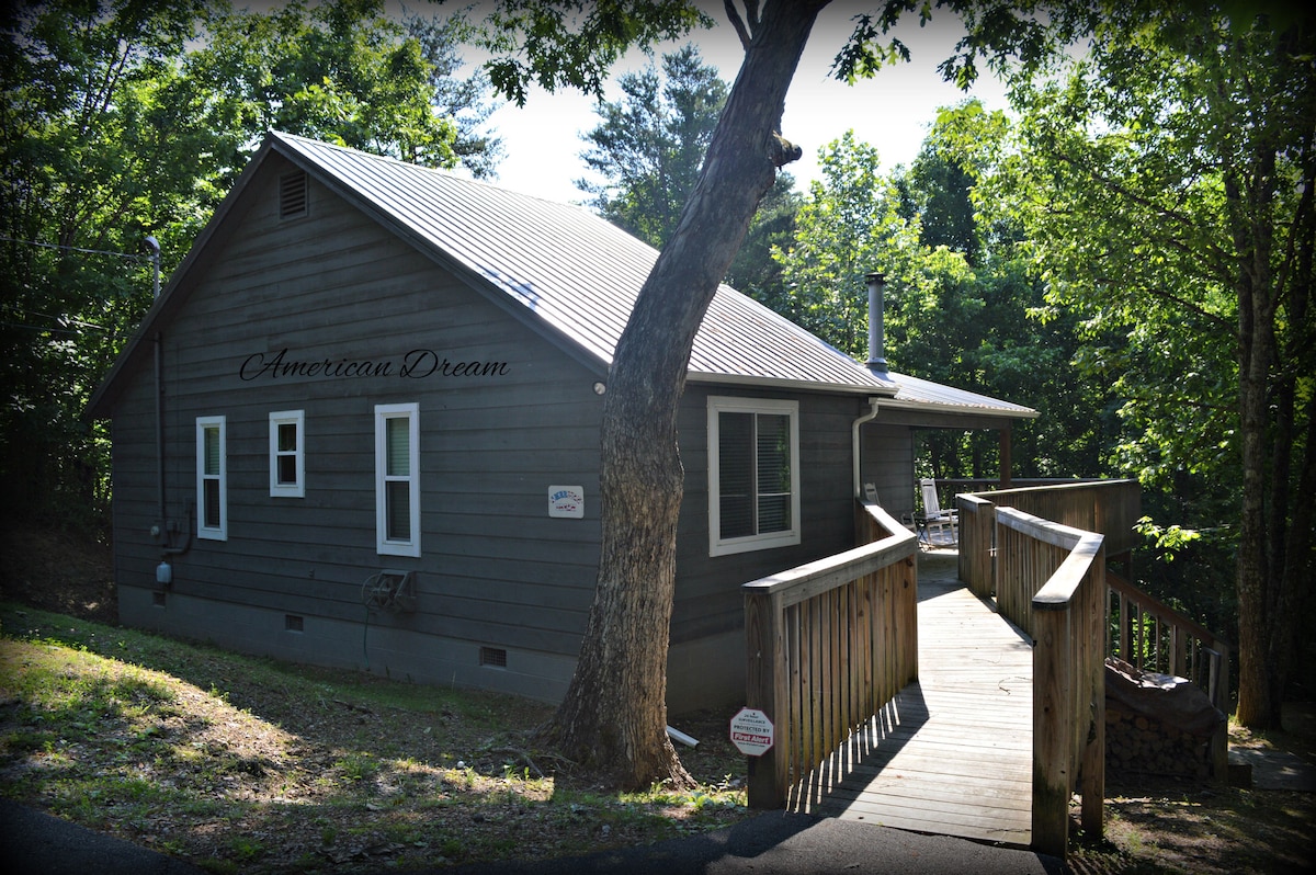 The American Dream presents a cozy 2-bedroom, 2-bath chalet in the desirable Wears Valley area, mere minutes from downtown Pigeon Forge. The unit features 2 king beds, a pull-out sleeper sofa, a wood-burning fireplace, and a hot tub on a large deck with a serene wooded backdrop, plus WIFI. A pet fee is applicable for pet-friendly stays - kindly message for further details. Additionally, high chairs and pack 'n plays can be provided with advance notice. 4x4 or chains are recommend during winter