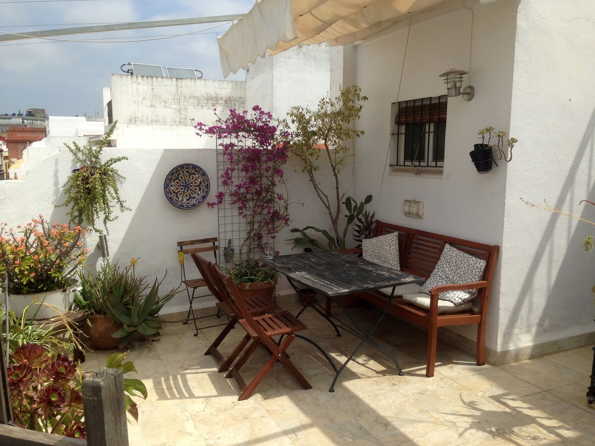 Добро пожаловать в одну из самых красивых квартир на крыше в стиле мезонета, расположенную в центре города. Наслаждайтесь отдыхом в очаровательной квартире площадью 140 кв. м, расположенной всего в 5-10 минутах ходьбы от собора, Аламеды или Сетаса. В этих апартаментах есть большая гостиная, две спальни с кроватями размера Queen size, полностью оборудованная ванная комната, отдельный туалет, хорошо оборудованная кухня и собственная терраса площадью 30 кв. м с солнечными парусами и барбекю.