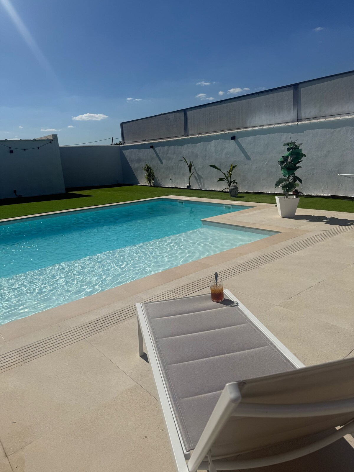 Ваш семейный дом для отдыха в Севилье в современном андалузском стиле Насладитесь уникальным проживанием в этом уютном доме, подходящем для семей. Жилье расположено в тихом и хорошо связанном с городом районе Севильи и имеет: - 3 спальни и всего 7 кроватей, идеально подходит для групп и больших семей. - 75-дюймовый экран для домашнего кинотеатра - Отдельный бассейн 8 х 6 метров, чтобы освежиться и отдохнуть. Центральный кондиционер во всем жилье. - стиральная и сушильная машины;