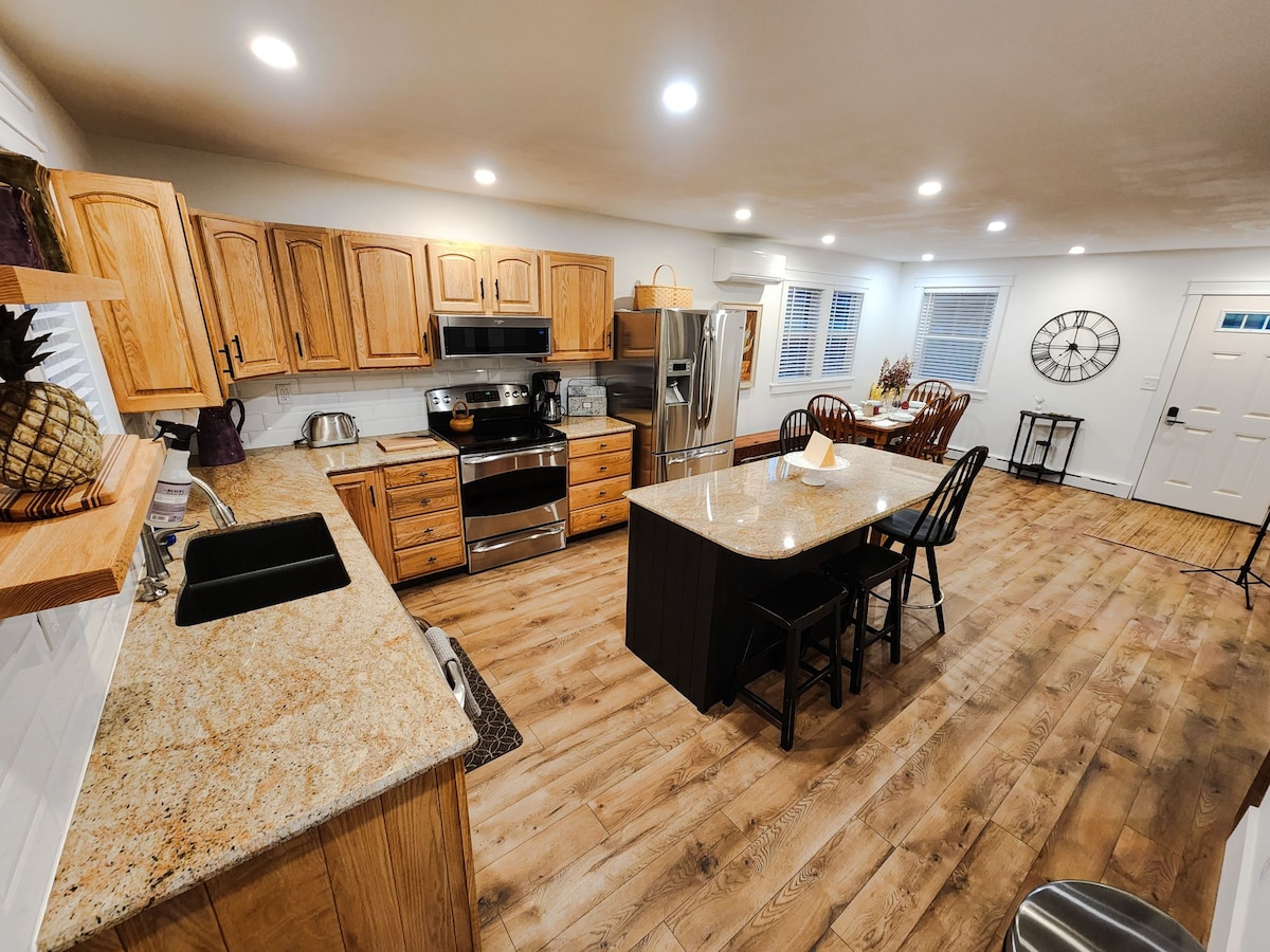 В ОУКСЕ - стильное место, где есть все необходимое! Красивая большая гостиная, кухня с гранитными столешницами и всеми необходимыми удобствами. Две ванные комнаты с одной ванной комнатой с открытой кирпичной стеной в главной спальне. В главной спальне есть двуспальная кровать размера Queen size и гостиная зона. Во 2-й спальне есть двуспальная кровать и диван. Прогуляйтесь по центру города до ресторанов и баров. Рядом с AOAA Trails есть частная парковка, которая достаточно большая для вашего трейлера. Всего в 15 минутах езды от курорта Knoebels Entertainment Resort и парка штата. В Oaks есть все!