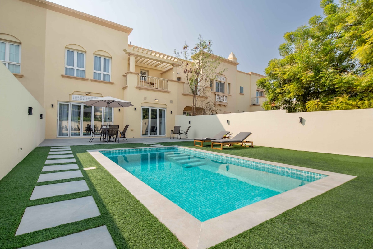 🌴 Отдохните в нашей элегантной вилле с видом на бассейн с балкона 🏊♂️. В этом просторном доме современная изысканность сочетается с уютным очарованием. К услугам гостей 🛋️ современная мебель, полностью оборудованная кухня 🍽️и спокойные спальни🛏️. К услугам гостей бассейн, тренажерный зал 🏋️и спортивные площадки🎾. Идеально подходит для семей или групп, исследующих главные достопримечательности Дубая 🏙️— всего в нескольких минутах езды🚗. Роскошный отдых в тишине ждет вас✨, .