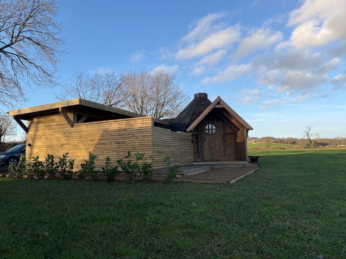 This cosy lodge offers a romantic haven for couples wanting to relax in peace. The luxury interior is styled to impress with every comfort catered for. Outside the covered veranda has a private hot tub, swing seat, outdoor hot shower and dining area where you can kick back and relax. Whether you want to stargaze, ramble, or relax, this is the ideal quiet venue with stunning sunsets and views over rolling countryside, horses, sheep and alpacas. Adults only. 2 guests max. Sorry, No pets.