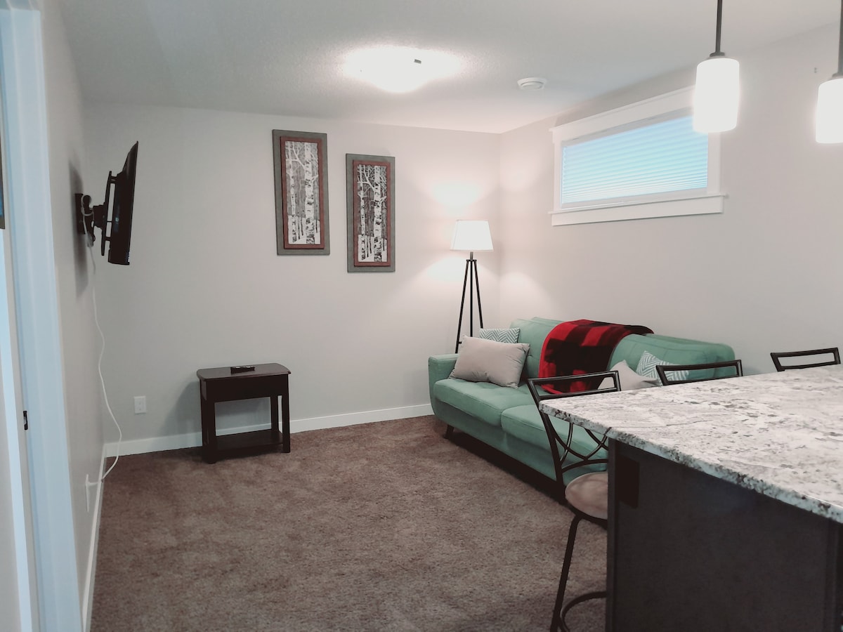 Отдельный люкс с 2 спальнями в половине квартала от больницы Паскуа и онкологической клиники Аллан Блэр. В одном квартале от Mosaic Place , Evraz Place и Exibition Grounds. Построенный в 2015 году, этот новый, чистый полудуплекс длиной 1100 футов имеет все необходимое, включая отдельный вход, прачечную, отопление и центральный кондиционер, полностью оборудованную кухню, 65-дюймовый Smart TV и WI-FI. Арендаторы на длительный срок (зрелая пара) занимают апартаменты на первом этаже. Гостям предоставляется кофе Keurig.