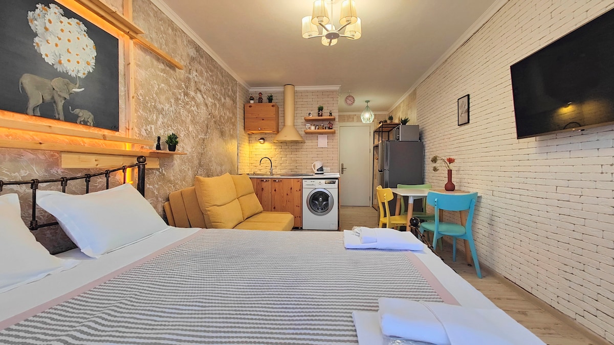 ✨ Уютная горная студия в Новом Гудаури ✨ Легко найдите Ziggy Apartment в Google! Всего в нескольких шагах от гондольного подъемника. Идеально для пар, семей или друзей. 🛏 Две односпальные кровати + диван-кровать. 🍳 Полностью оборудованная кухня 🌄 Собственный балкон с потрясающим видом на горы. 📶 Бесплатный Wi-Fi и центральное отопление. 🔑 Легкое прибытие Вы будете прямо рядом со знаменитым рестораном Drunk Cherry и баром Black Dog, а до склонов всего несколько минут. Идеальная база для лыжников, сноубордистов и любителей природы!