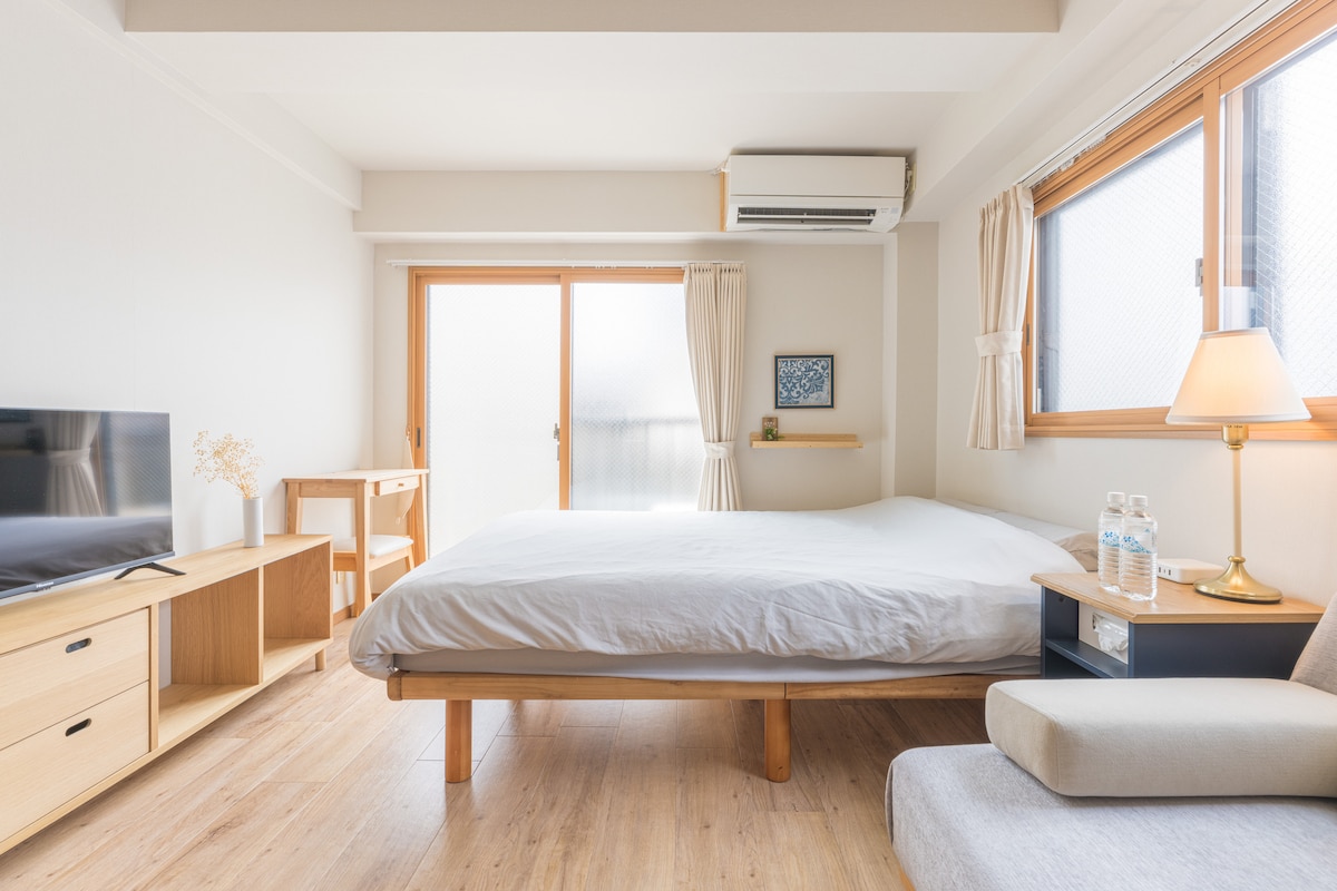 В этом жилье, расположенном в центре города, удобно для всей семьи. Две кровати размера King size в номере, подходит для семьи и друзей. Пол удобный, и жилье уединенное.Подходит для 5 человек. Открытая кухня полностью укомплектована индукционной плитой, кастрюлями и посудой, если вы хотите есть домашнюю еду, простая японская кухня не проблема Бар соединен с гостиной и обеденной зоной, будь то утренний кофе или ужин, все в порядке. Раковина спроектирована с отдельной ванной комнатой, так что вы можете остаться с несколькими людьми в своем собственном темпе Стерео Bluetooth, прослушивание музыки и принятие горячей ванны ночью в Японии — самый расслабляющий момент поездки. В комнате есть проектор, так что вы можете легко подключить часто используемую цифровую потоковую платформу. Стиральная машина, очиститель воздуха, утюг и просторный шкаф, все, что вам нужно, у нас есть. Пространство подходит для одного человека, чтобы спокойно поработать в баре или остановиться с друзьями или семьей на несколько дней Чувствуйте себя как дома, каждый комфортно.