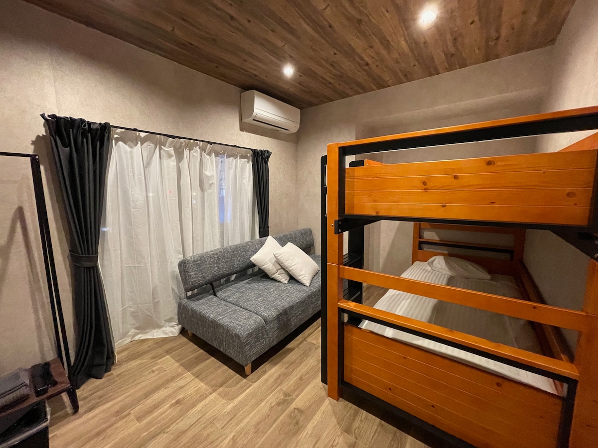 2 двухъярусные кровати + 2 комплекта футонов/природный горячий источник