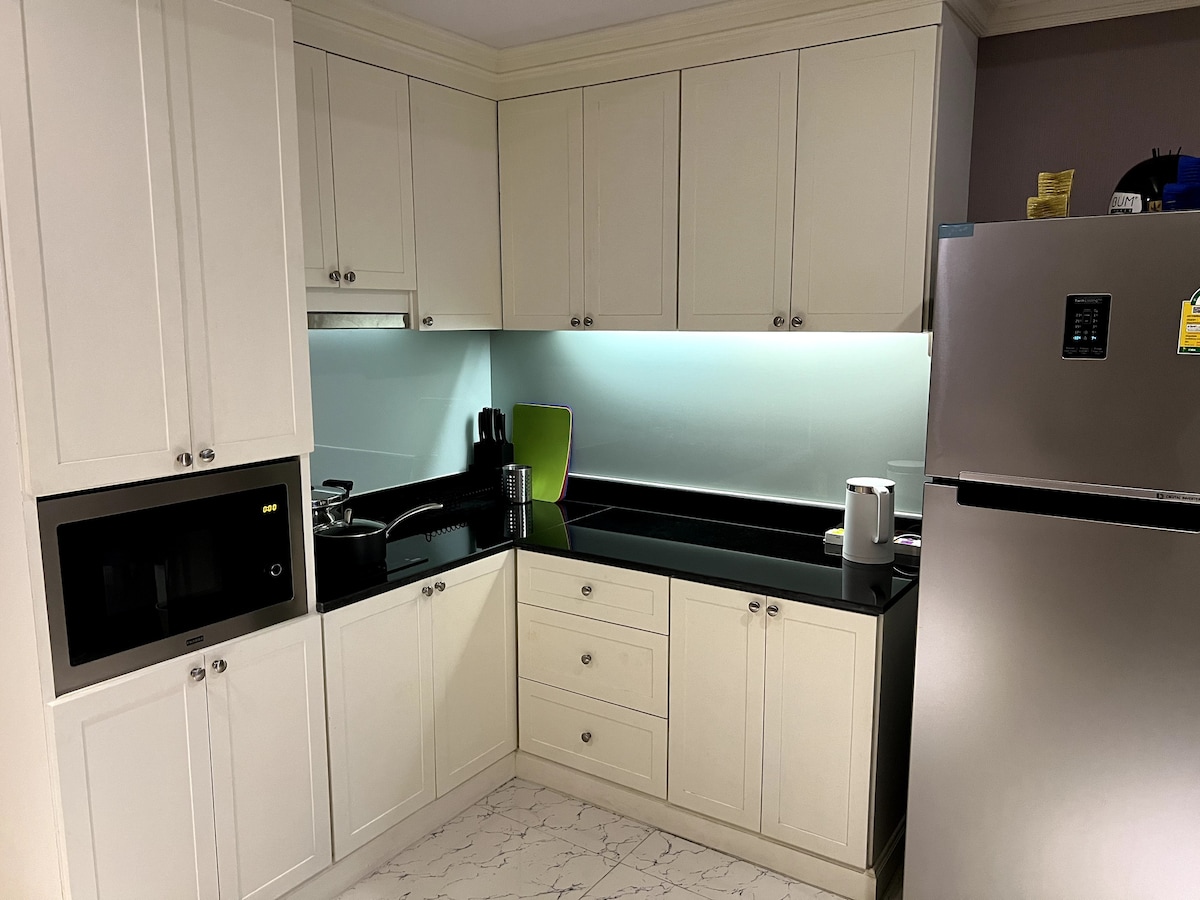 Our spacious (68 sq.m.) room is newly renovated and comes with all the amenities you need. Situated in the heart of Bangkok amidst upscale hotels, it offers easy access to Thailand's top attractions. Just a short 6 mins walk from Sapan Taksin SkyTrain Station, 1 min walk to convenient store, 4 mins walk to department store, our location is incredibly convenient, with renowned dining options, the bustling business district, and popular tourist spots nearby. *There is NO pool and gym for guest*