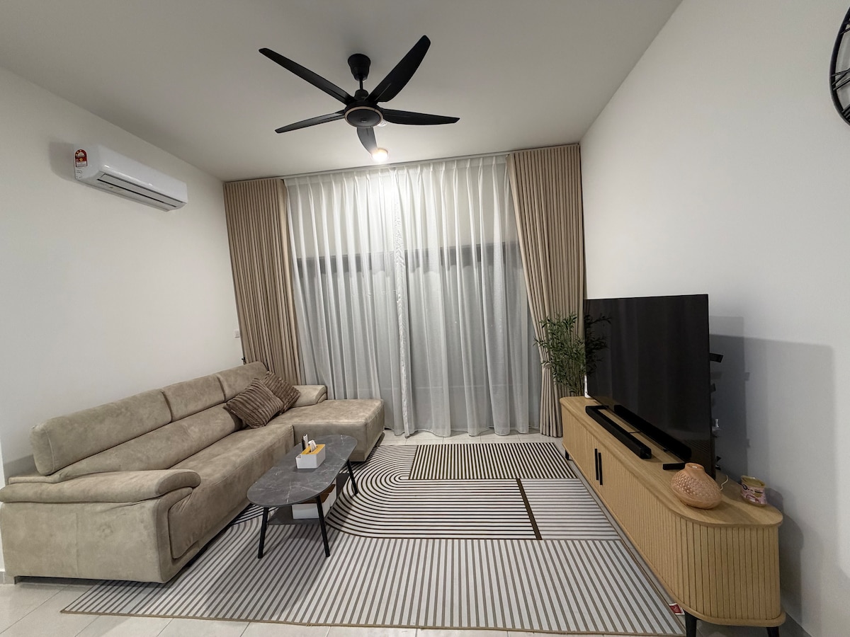 📍 Расположено в резиденции Antara, Presint 5, Путраджайя. Жилье: Квартира целиком в вашем распоряжении с 1 кроватью размера Queen size и 1 односпальной кроватью с выдвижной кроватью. Кухня оснащена плитой, микроволновой печью, холодильником, чайником, кухонными принадлежностями, тарелками и столовыми приборами. Комфортная гостиная с диваном и телевизором. Места поблизости: PICC – 5 минут. Озеро Путраджайя — 5 минут. Площадь Путра и Памятник тысячелетия — 7 минут. Anjung Floria — 8 минут. Парк Путраджайя-Ветландс — 10 минут. Ботанический сад Путраджая — 10 минут. Мост Сери Вавасан — 10 минут.