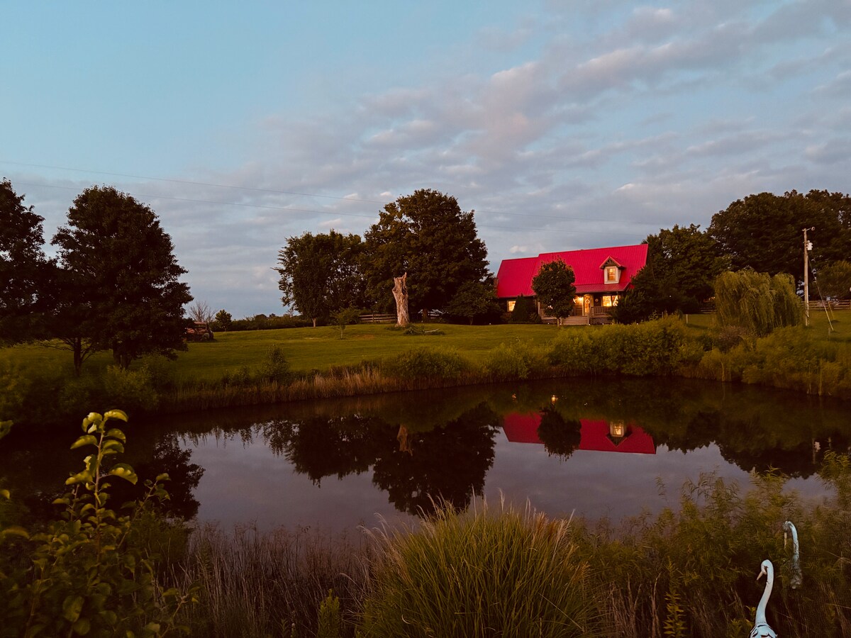 Представьте, что вы наблюдаете самый красивый закат с крыльца на холмах Кентукки. Этот домик, окруженный сельхозугодьями и тишиной, которая успокаивает вашу душу, является местом, где можно укрыться от хаоса и воссоединиться с собой, своей семьей или даже группой друзей, желающих отдохнуть. Красота Кентукки на полном дисплее, приезжайте и наслаждайтесь ею. Также доступно для больших групп для проведения свадеб и других мероприятий. Свяжитесь с нами, чтобы узнать подробности.