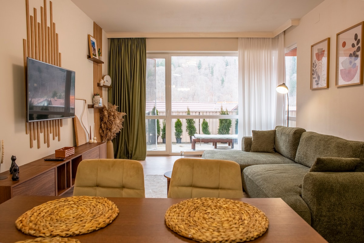 Добро пожаловать в тихую квартиру Forestline, окруженную лесом, расположенную в красивом городе Синая. Жилье теплое и гостеприимное, с элементами из натурального дерева и непринужденной атмосферой — идеально подходит для пар, семей или тех, кто хочет насладиться природой и спокойствием. Просыпайтесь с видом на лес, наслаждайтесь утренним кофе в тишине и возвращайтесь после дня знакомства с Синаей, пешеходными тропами или замком Пелеш в уютное, комфортабельное жилье.