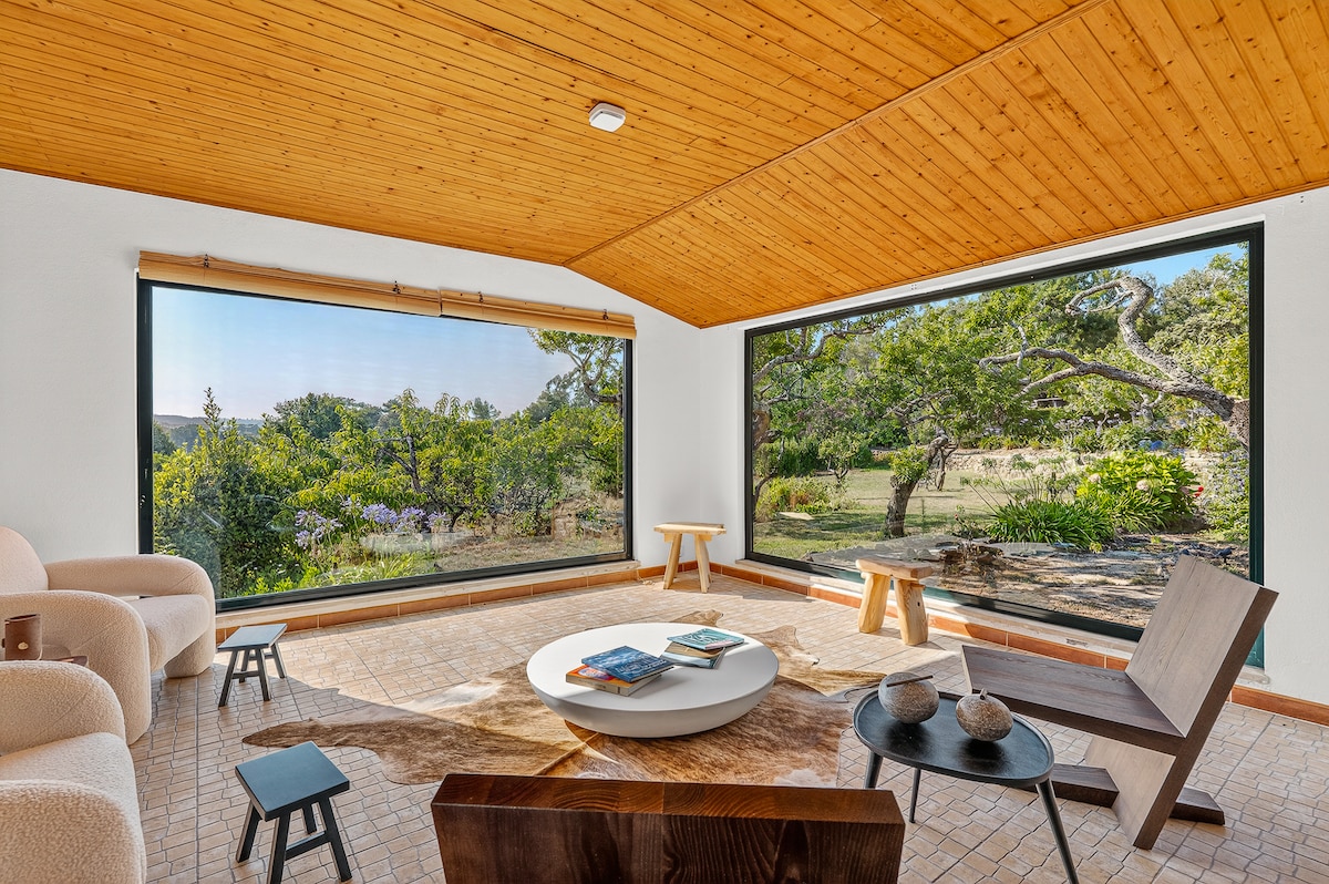 Эта небольшая студия расположена в центре природного парка Синтра-Кашкайш и расположена в центре природного парка Синтра-Кашкайшн и площадью около 24 000 кв. м с просторными садами, сосновым лесом, бассейном, газоном и пространством для медитации. В квартире есть уникальное место со спальной зоной и гостиной зоной, мини-кухней и ванной комнатой. Вместимость до 3 человек. Частная парковка. Органический сад и огород. Связь с природой. Свежий воздух, тишина и тишина. Кошки, птицы, перепелы или кролики могут приветствовать гостей.