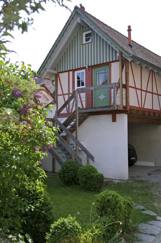 Die Ferienwohnung befindet sich im Untergeschoss unseres Wohnhauses und hat einen separaten Eingang. Sie besteht aus einem Wohn-/Schlafraum, einer Küche und einem Bad. Der Wohn-/Schlafraum ist hell und freundlich, ausgestattet mit einem Doppelbett Liegefläche 1,60 x 2,00m. Beistellbett 0,80 x 1,90m oder Kinderreisebett für 3. Person bei Bedarf. Beides gleichzeitig nicht möglich.Bad mit Dusche und WC. Die Wohnung verfügt über eine voll ausgestattete Küche. Kinderstuhl wird bei Bedarf beigestellt.