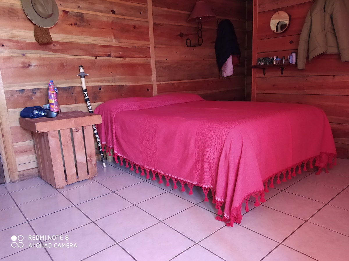 Отличный домик для отдыха 2 спальни (1 двуспальная кровать размера King size, 1 односпальная кровать и 1 двухъярусная кровать). 1 ванная с туалетом. Кухня с достаточным количеством гостей; плита, холодильник. Две комнаты для кресла. Оснащена газовым обогревателем и мини-сплитом для всей хижины. Достаточно патио, чтобы припарковать две машины . В социальной зоне есть садовый стол,барбекю без посуды, костровая яма и садовая мебель. Солярий снаружи домика с телевизором, столом и креслами. Хижина в окружении забора, А НЕ ОТЕЛЯ