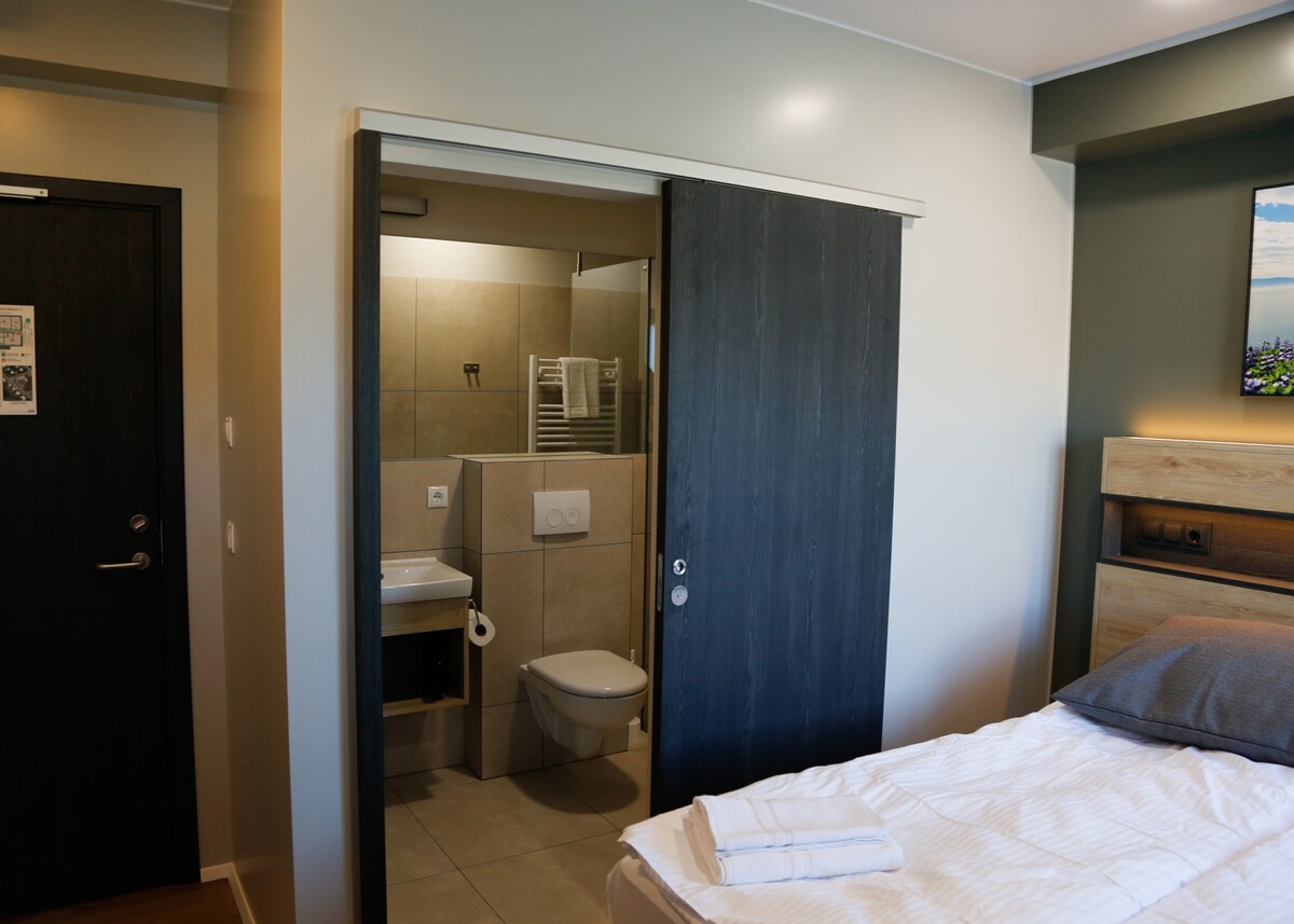 К услугам гостей бесплатные туалетно-косметические принадлежности. В распоряжении гостей собственная ванная комната с душем и феном. Двухместный номер с 1 кроватью, принадлежностями для чая/кофе, шкафом, отоплением, телевизором с плоским экраном и видом на горы. В квартире 1 кровать.