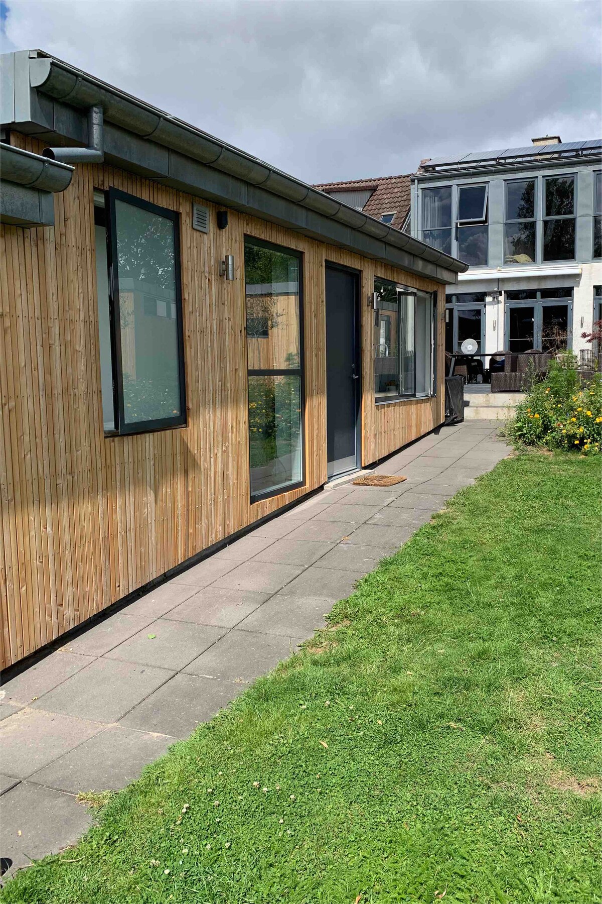 Хорошая недавно отремонтированная пристройка, где мы сдаем эту двухместную комнату в пристройке с хорошей кроватью 180 см и гардеробной. Телевизор с ChromeCast. Небольшая уютная обеденная зона с удобными стульями. Вход с мини-кухней, электрическим чайником, холодильником с морозильной камерой. Нет возможности приготовить горячую еду. Бесплатный чай, кофе и мини-бар. Ванная комната с шампунем, кондиционером и мылом. У вас есть пристройка, отдельный вход, и вы не делите кухню или ванную комнату с другими. У нас есть два велосипеда, которые вы можете взять напрокат.