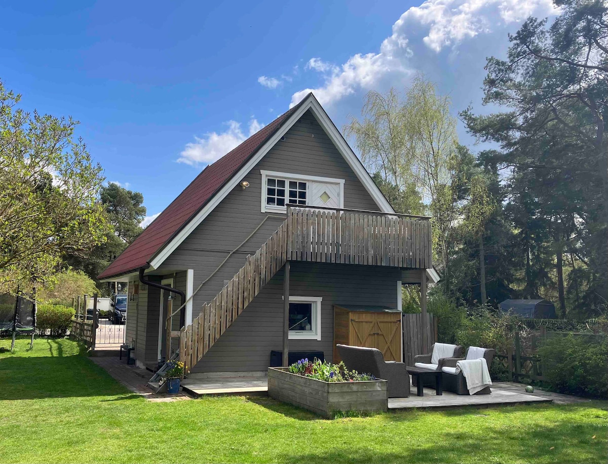 Добро пожаловать в мою квартиру-студию над гаражом у меня дома. Sandskogen - уютный бывший летний коттедж. Есть двуспальная кровать и диван-кровать, в которых могут разместиться до 4 человек. У вас есть собственный вход по металлической лестнице за гаражом. Есть небольшая кухня и ванная комната с душем. Также есть небольшой балкон и выход в открытое патио под балконом. Жилье расположено недалеко от торгового центра Center Syd, поля для гольфа Barsebäcks и океана.