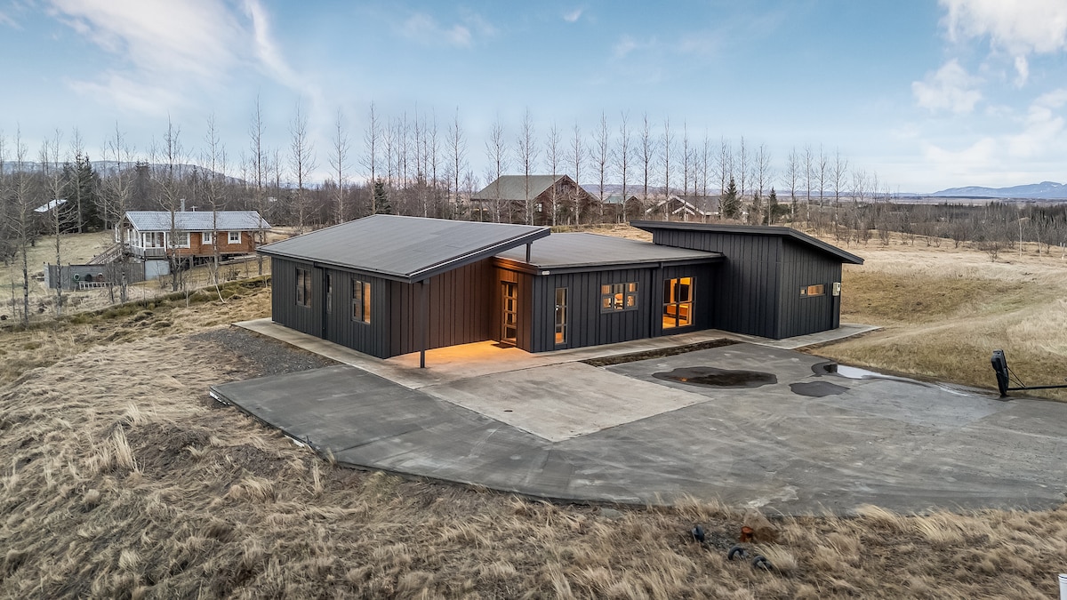 Откройте для себя идеальное исландское убежище всего в 20 минутах от Золотого кольца и в 1,5 часах езды от Рейкьявика. Из нашего просторного дома открывается панорамный вид и современные удобства, включая гидромассажную ванну. В жилье с тремя спальнями и гостевым домом могут с комфортом разместиться до восьми взрослых. Идеальное расположение для знакомства с местными достопримечательностями и кольцевой дорогой. Это ваш путь к незабываемому исландскому приключению.