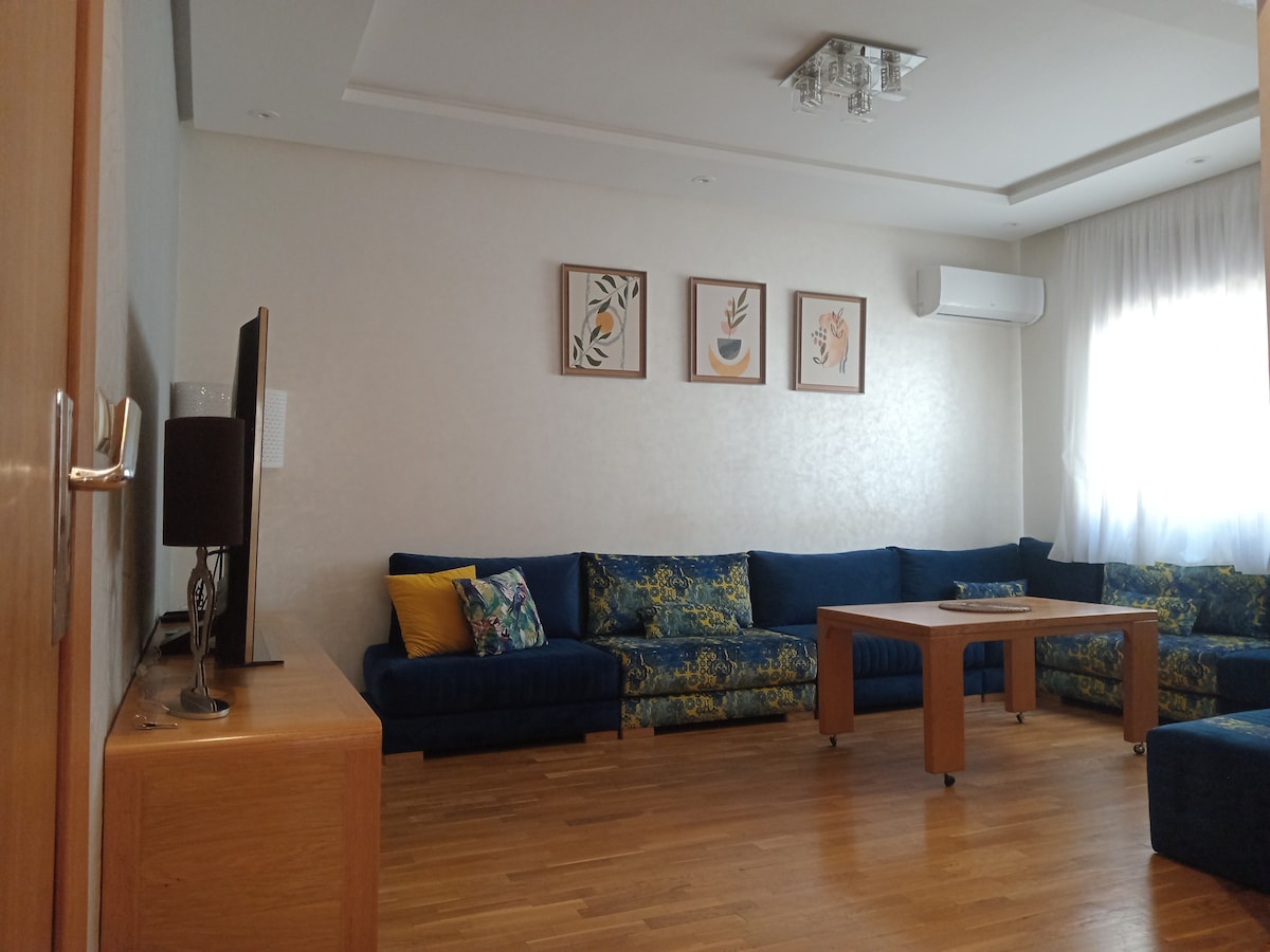 ‼️À LIRE AVANT DE RÉSERVER : Appartement réservé aux familles et couples mariés (couples non mariés et groupe d’amis non acceptés). Moderne et entièrement équipé à Témara/Skikina : 2 chambres, 2 salons, cuisine, salle à manger, 1 SDB, 2 WC. Wi-Fi fibre, TV 75’’ (IPTV/Netflix), parking. Quartier calme et sécurisé, proche gare, plages et commerces. Non-fumeur, pas d’animaux ni fêtes. Check-in 16h / Check-out 11h.